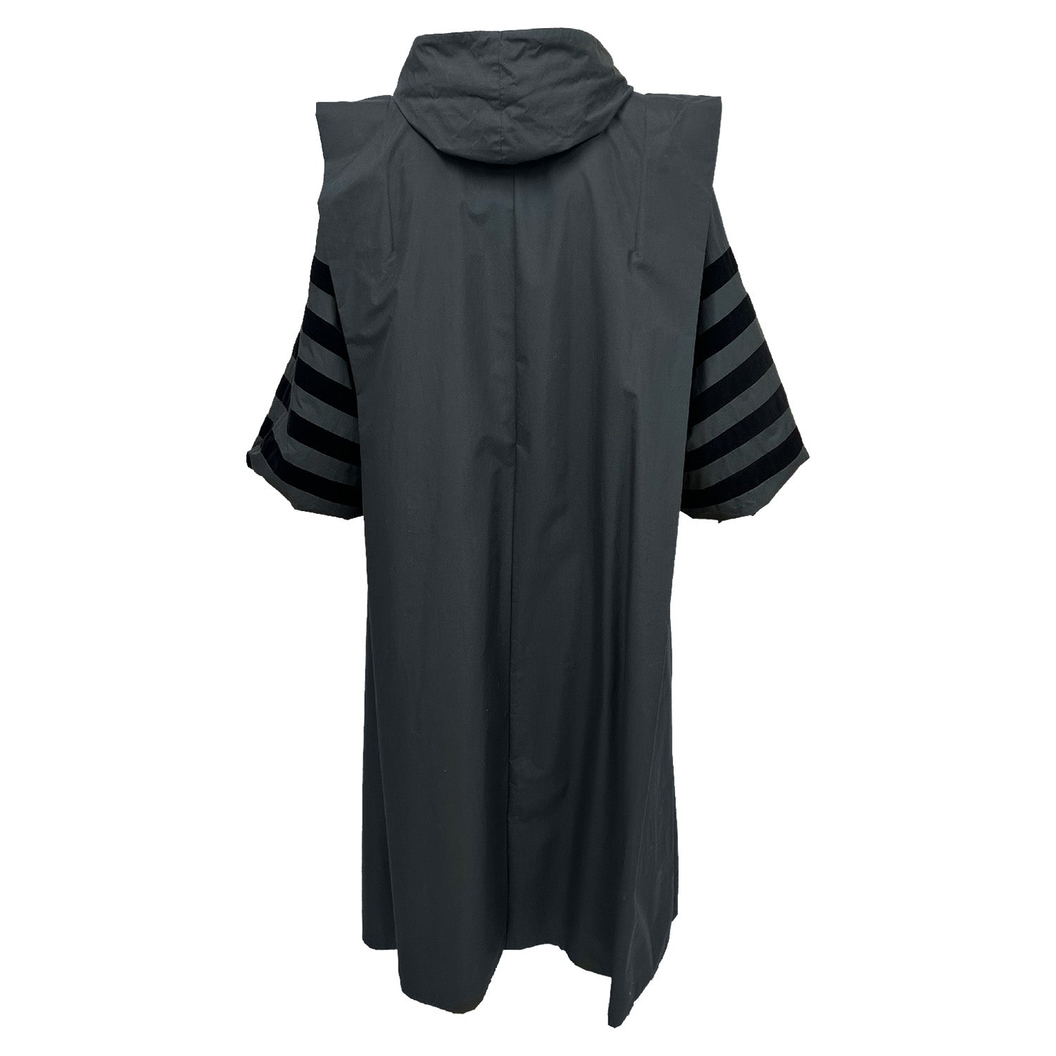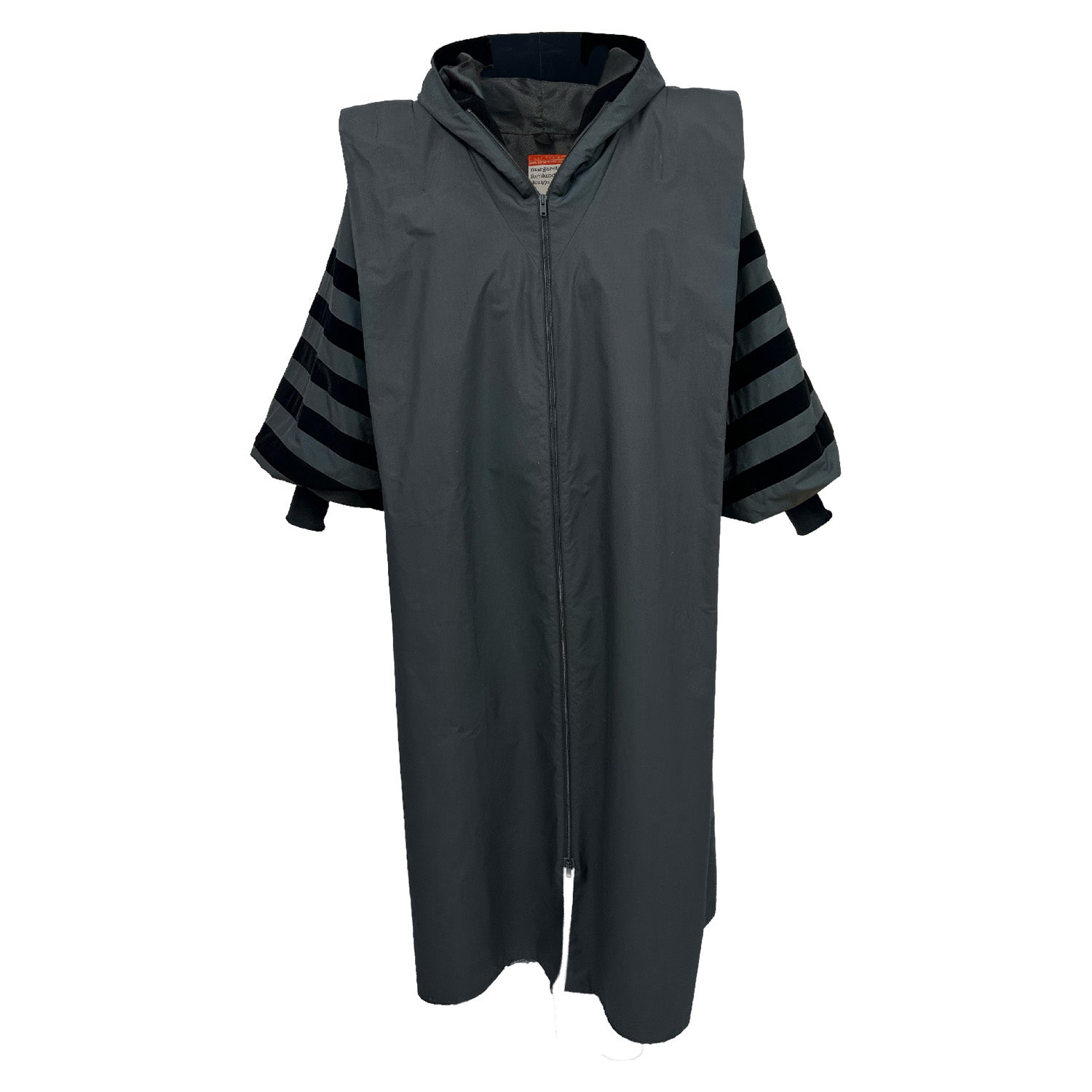 Coat with hood, 2-way zipper and pockets in the side seam. The outer fabric is High Tech Micro, the fabric is breathable and wind and waterproof. The coat is a spacious long model with sewn-in sleeves with velvet decoration on the sleeves. The sleeve ends with a soft cotton-lycra cuff. The coat has a decorative pleat on the shoulder area.