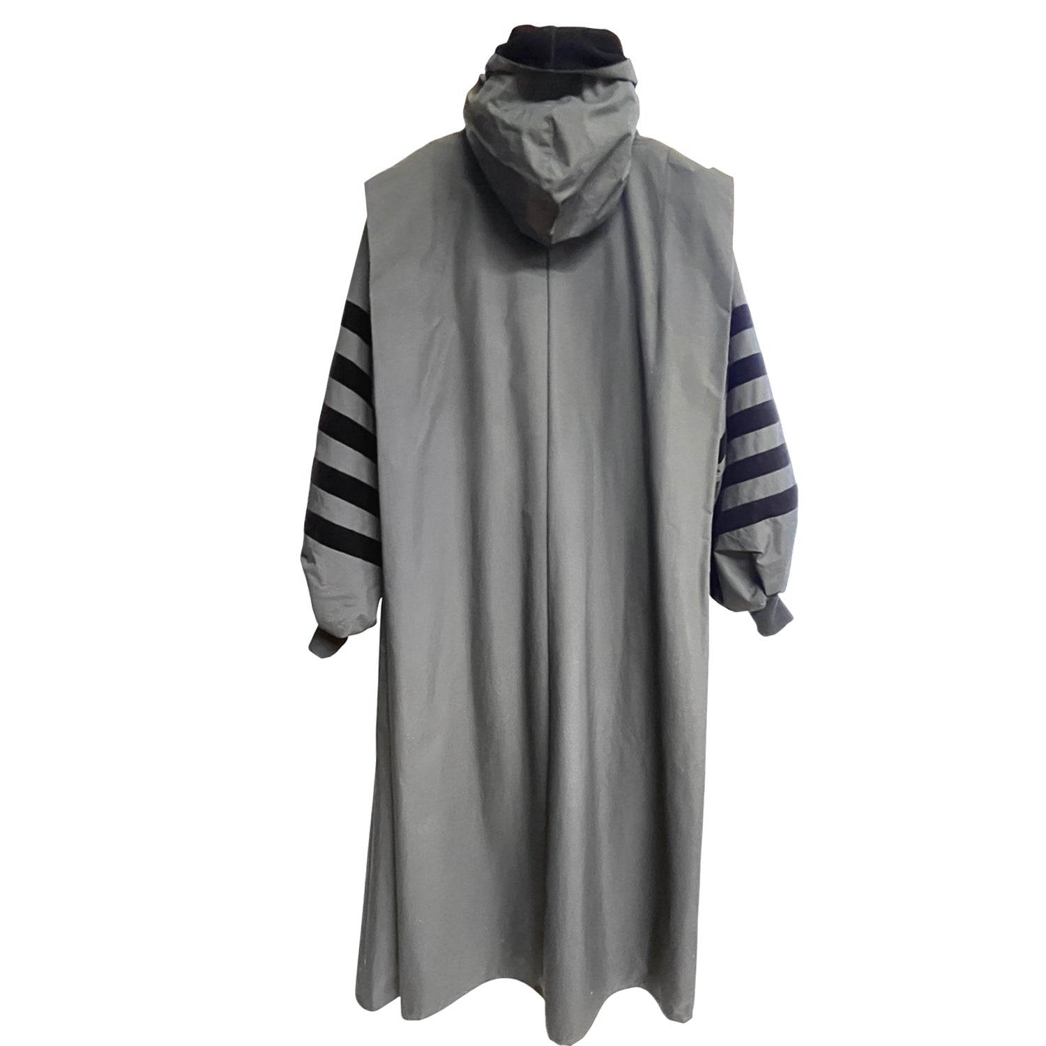 Kappa med kapuschong, 2- vägsdragkedja och fickor i sidsömmen. Yttertyget är High Tech Micro, tyget andas och är vind och vattentätt. Kappan är en rymlig lång modell med isydda ärmar med sammets dekor på ärmarna. Ärmen avslutas med en mjuk bomulls-lycra mudd. Kappan har ett dekorativt veck på axelpartiet.